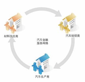 1.组建汽车金融服务网络,将汽车生产商的上游供应商和下游经销商纳入金融服务体系,帮助汽车生产商快速回笼车辆销售款。