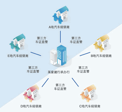 由一家承办行为全国各地的经销商提供融资支持,引入第三方监管机构对车证进行监管。