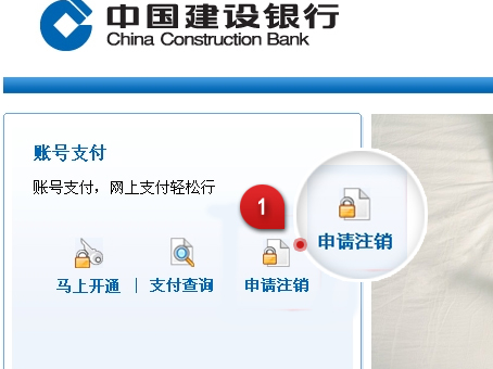 1.进入建行网站www.ccb.com,点击左侧“便捷服务”中的“账号支付”,进入“账号支付”功能页面,点击“申请注销”。